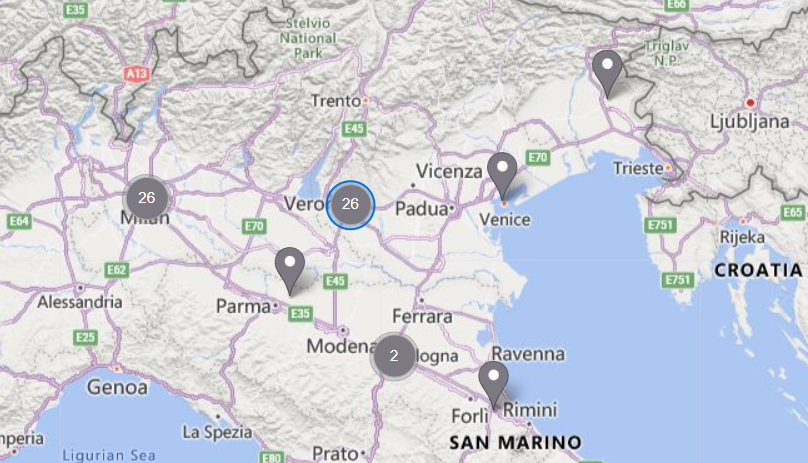 When you select a pushpin, its border changes to blue and a drop down menu located at the top of the map lists the associated devices in alphabetical order, showing online devices first. The pane on the right shows detailed information about the device location, IP address and allows further settings. You can manually enter a device location, so it will be displayed on the map.